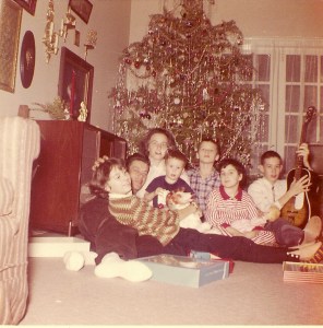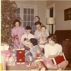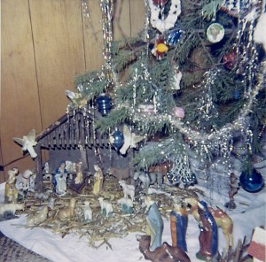 present, especially at Christmas. Mom believed Christmas should be all about family and traditions. We put up the tree together, placed the creche beneath the tree, sang carols, and laughed over past tree raisings. With so many people living in one house, someone always had a funny remembrance. Though Mom decorated most of our house during the day while we were at school, she enlisted our help with baking and food prep and many of our other Christmas traditions. I still make many of the same cookies we baked in Mom’s kitchen.
