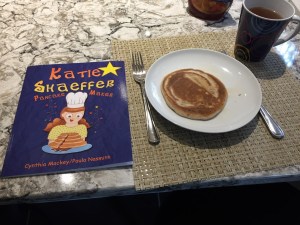 Cynthia Mackey has always loved children’s literature. After years of teaching preschool and kindergarten, she is proud to have written her first children’s book, KATIE SHAEFFER, PANCAKE MAKER.  She lives on the west coast of British Columbia wither her family and her piano where she faithfully continues her Saturday morning pancake tradition.  (Author Bio taken from the back cover of the book)